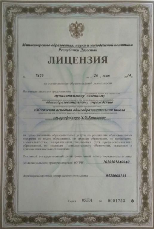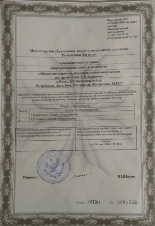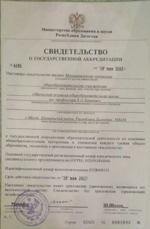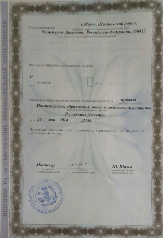 Адрес местонахождения образовательной организации* 368440, Республика Дагестан, Шамильский район, село Могох